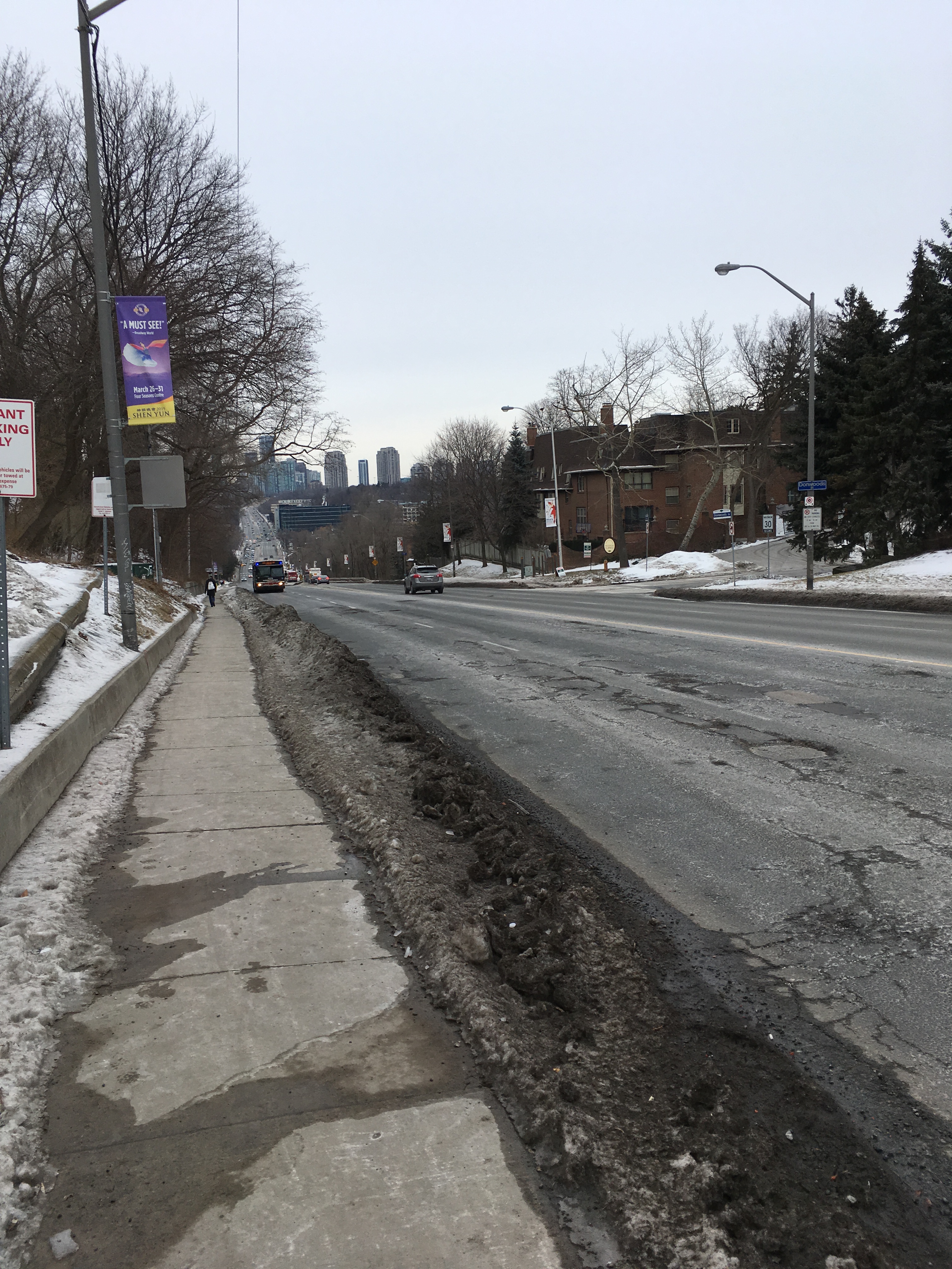 For the most part, it was an easy walk. The sidewalks on the main roads are mostly clear of ice, and the weather wasn’t too bad compared to the past couple of weeks. The hill up Wilson to Armour Heights is not too steep – it’s a steady climb on a moderate slope though it does go on and on.