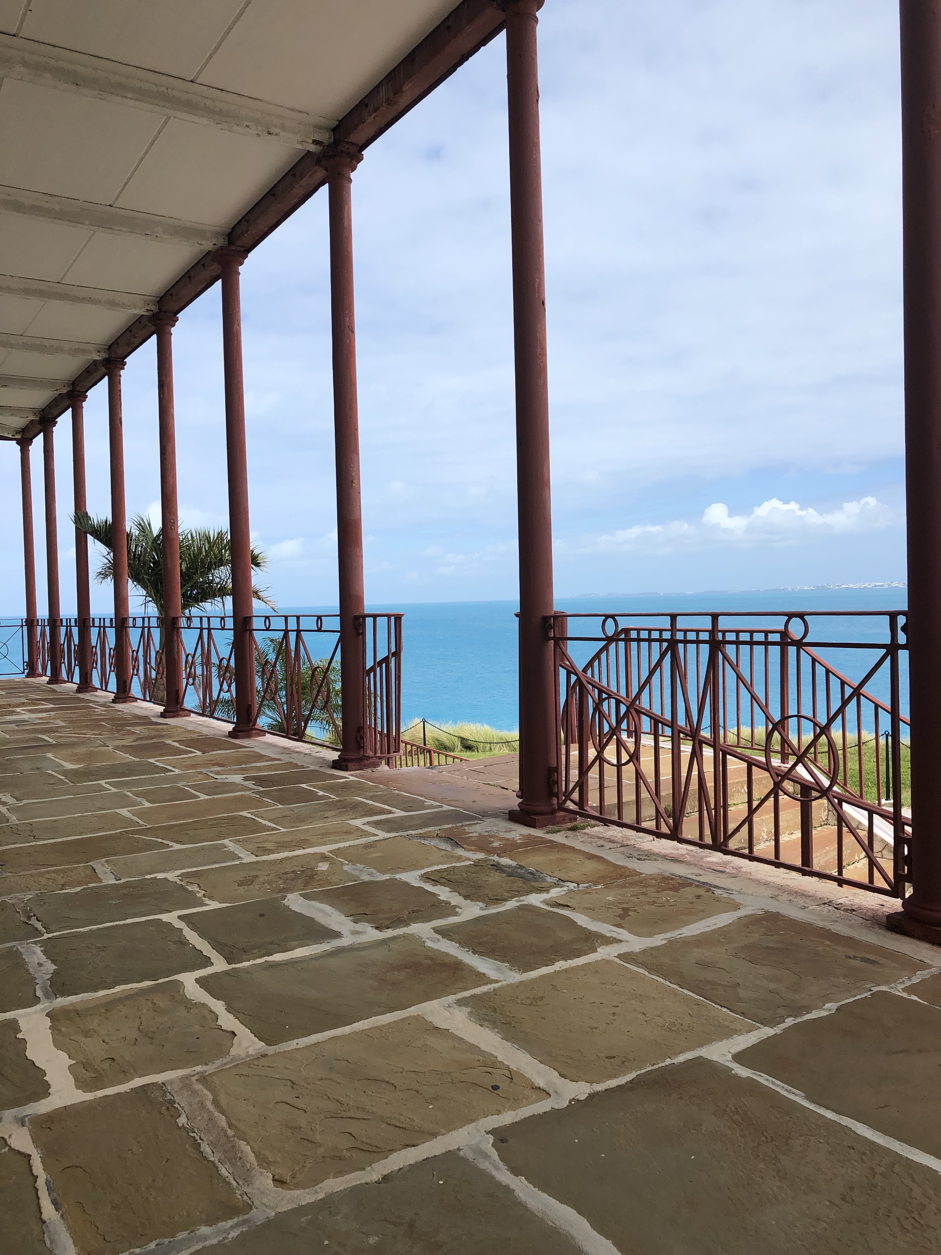 After a fish sandwich and a salad, we headed off for another circuit of the town, and since the next ferry wasn’t due for awhile, we took in the National Museum, located in the Dockyards. This encompasses one of the original forts build to defend the Royal Navy base in Bermuda, which the Dockyards served. Within the walls of the fort is the Harbour Master’s House, built in the 1830’s and fully restored in the 1990’s. The views from the wraparound veranda are spectacular.