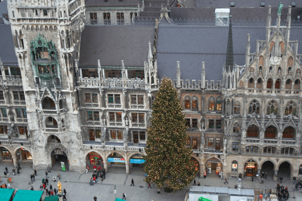 Then in the evenings we would go out together and wander through the glorious Marienplatz, alive with winter market stalls, humming with people, ringing with music, and redolent with cinnamon, cloves, and nutmeg from the spiced cakes, cookies, and drinks on offer.