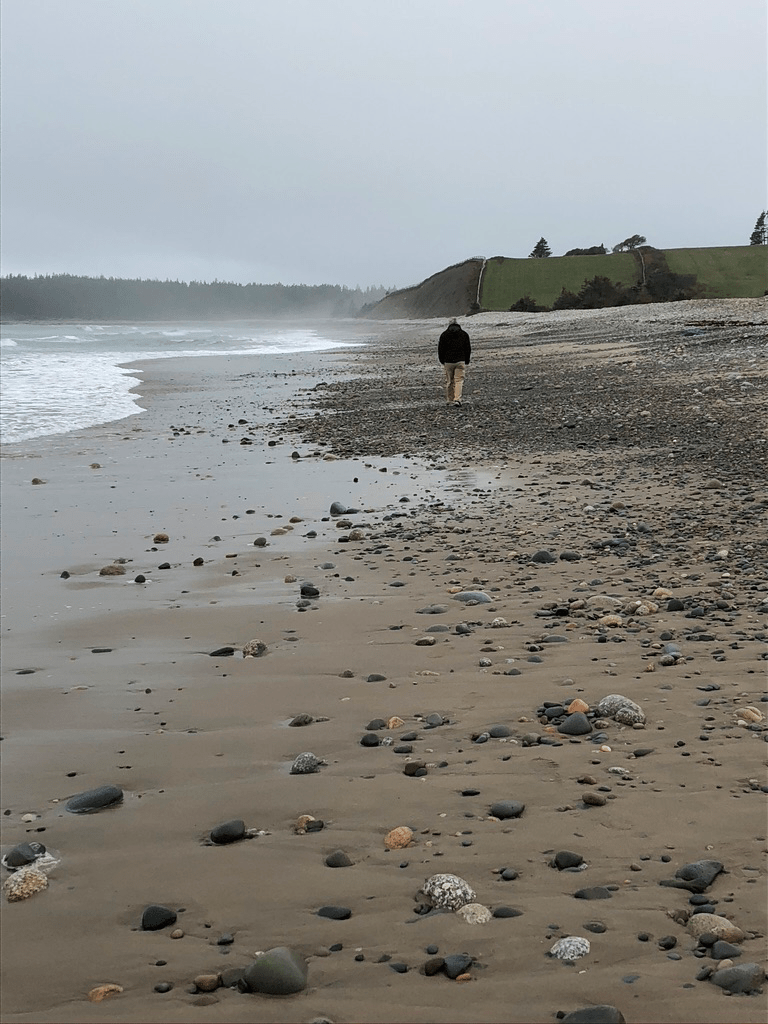 There’s something hypnotic about the sounds of water, the ruffle of wind in your ears, the splash on your legs and the crunchy grit between your toes. You get lost in the walk, on a beach. The heat through the soles of your feet shock-cooled in the water. The gulls you chase and the crabs you watch and the shells you search for. The perfectly shaped piece of driftwood. How did that shoe wash up here? Is that a seal? Do I have to go back?