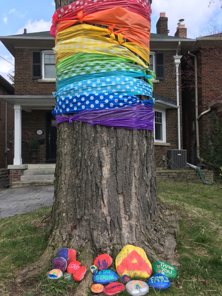 On side streets all round my neighbourhood there are little monuments, signs, and tokens. COVID-19 has people hunkering down, and at the same time looking up for once, to see the many people who work day in and day out to do the little things – stock grocery store shelves, clean hospitals, prepare and deliver food. I think, when this is over, will new-normal mean old-normal for the cleaners and the shelf-stockers – out of sight and out of mind?