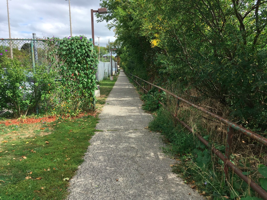 Surface: It’s a public road so concrete, concrete, concrete, and in winter add large dollops of salt. Wear comfy shoes.