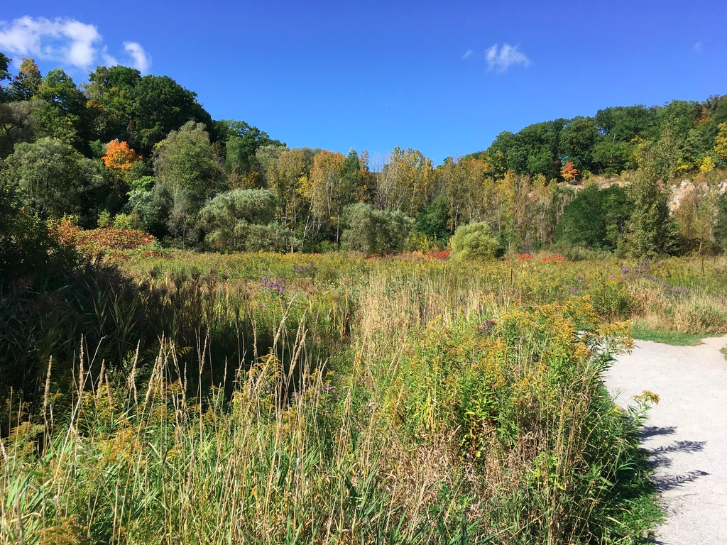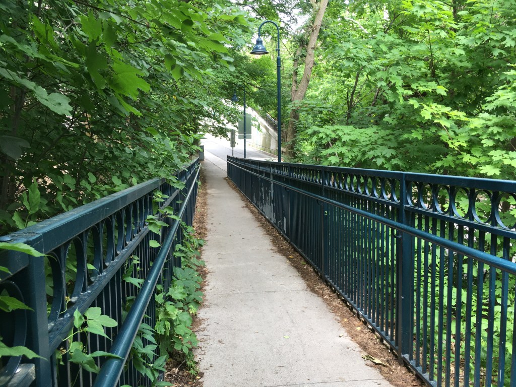Starting in mid-town on the Kay Gardner Beltline Trail on the north side of Mount Pleasant Cemetery, it follows that Trail through the Cemetery and then out on the south-east end, to continue down the Moore Ravine past the Don Valley Brickworks. Here, divert to the Brickworks for a pitstop, and then cross Bayview to join the Lower Don Trail.