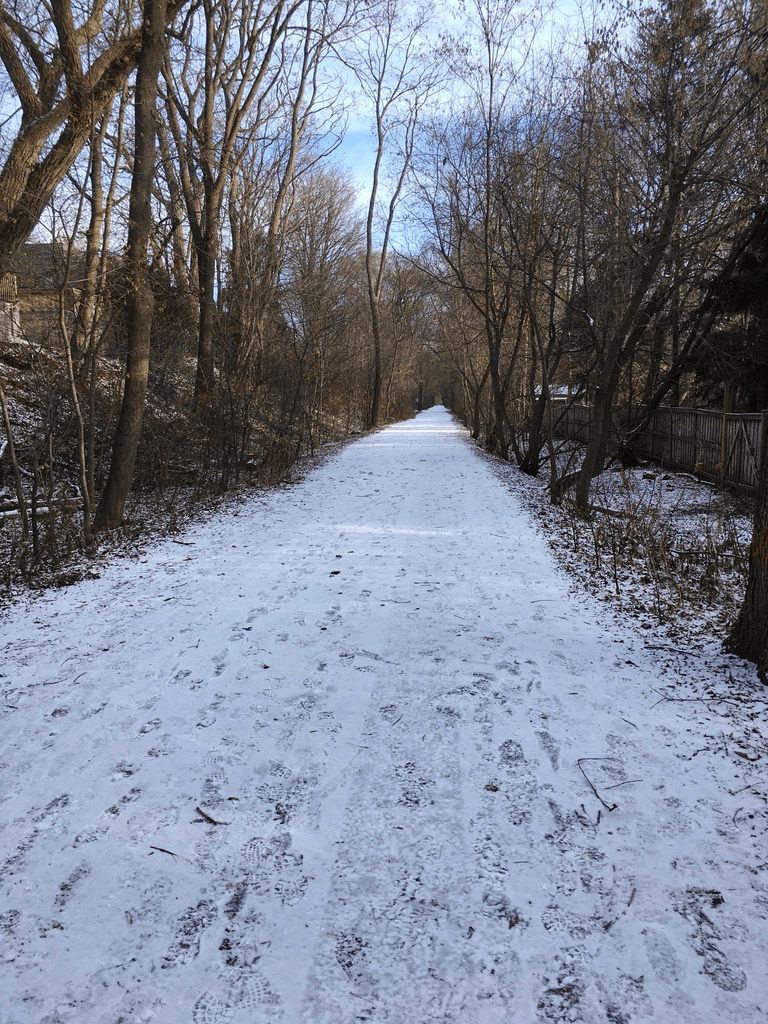 Public Transit: Take subway Line 1 to Davisville Station and walk south 2 blocks along Yonge Street to Merton Street. Cross at the lights, walk about 50m east and turn into the laneway behind condo to reach the Beltline Trail opposite the gate into Mount Pleasant Cemetery. The finish is the same spot, so just reverse your steps to get back to Davisville Station.