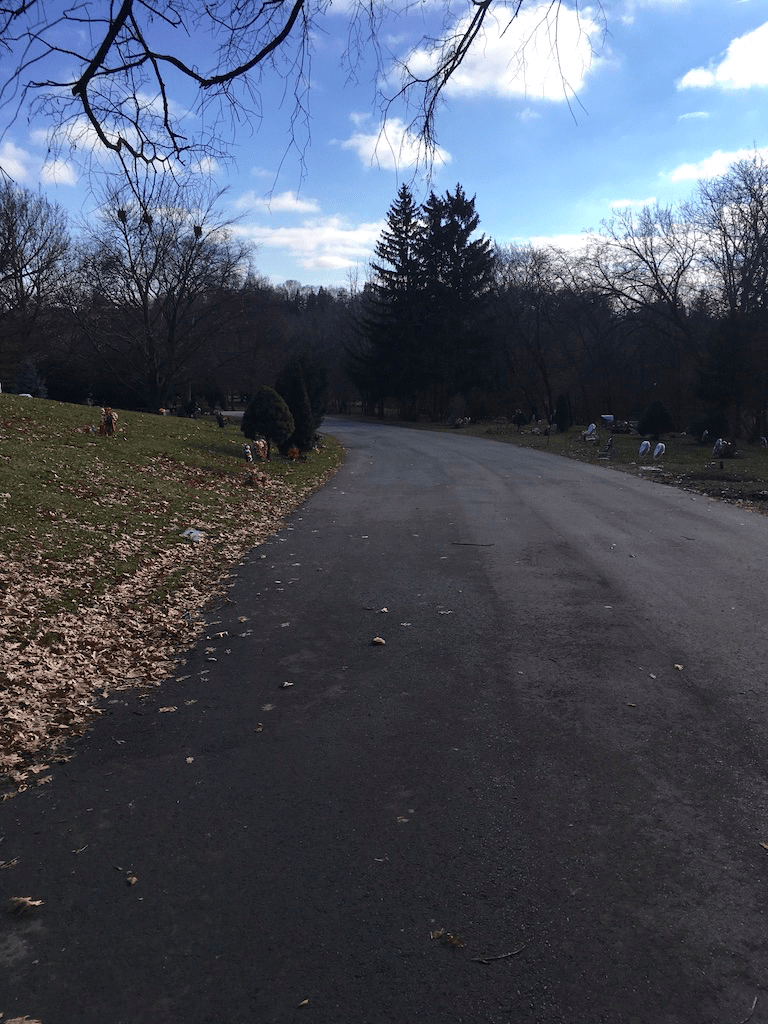 Cutting through the park, you emerge onto St. Clair Avenue at the bottom of Prospect Cemetery. The roads through here wind north and exit onto Eglinton Avenue. Turning west for a bit, you find Caledonia Road, go north to Bowie Avenue, and then turn west to pick up the start of the York Beltline Trail. This then curves north and then east, taking you eventually to Marlee Avenue. Exiting this trail, you cross Marlee at the lights, follow Elmridge Drive over the Allen Expressway, and then turn into the lane to join the Kay Gardner Beltline again at its western end. Following this all the way back to Mount Pleasant Cemetery completes the loop.