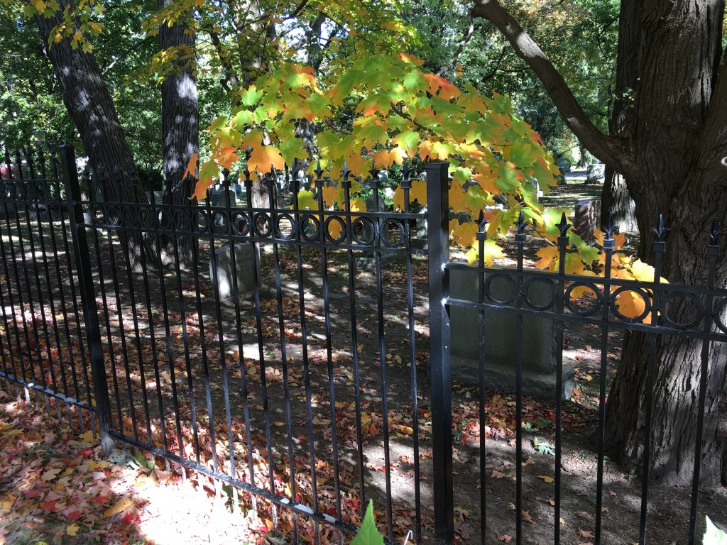 At the Beltline, turn left (east) and follow it for about 100m to the entrance into Mount Pleasant Cemetery. Inside the Cemetery follow the purple painted lines on the road, following it east under Mount Pleasant Road and around towards the memorial gardens. The marked path takes you east and south and exits the cemetery at Moore Avenue, opposite the entrance to the Moore Ravine Trail – careful, there are always many impatient drivers as you try to cross.