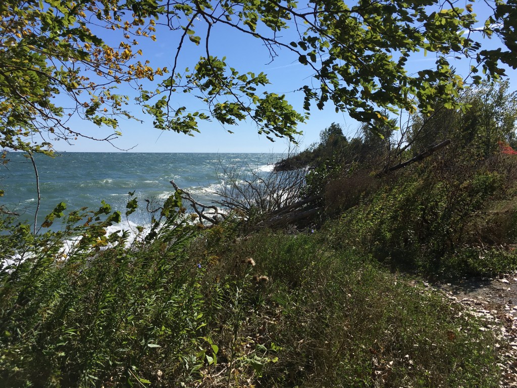 There was a stongish breeze off the lake and a bit of chop so the soundscape was composed of waves slapping the shore, rustling reeds, and the shushhh of leaves in trees. While I was only a km from the downtown core, apart from the occasional aircraft overhead my footsteps were the only man-made sound.
